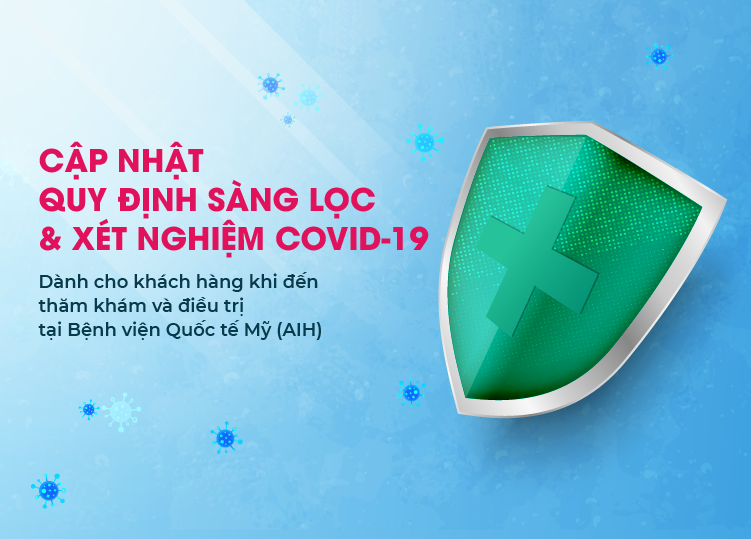 Trước tình hình dịch bệnh Covid-19 đã dần được kiểm soát tại TP.HCM, nhằm đảm bảo quy trình khám bệnh, chữa bệnh nhanh chóng, thuận tiện, an toàn và hiệu quả, Bệnh viện Quốc tế Mỹ (AIH) trân trọng thông báo về Quy định sàng lọc và xét nghiệm Covid-19 dành cho các khách hàng đến thăm khám và điều trị tại Bệnh viện quốc tế Mỹ (AIH) từ ngày 13/05/2022